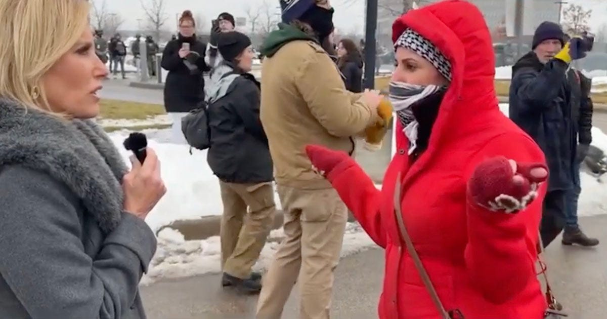 And when pressed about why her face was covered, the protester claimed it was because her “nose is cold.”